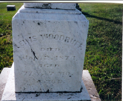 Griffis, Sarah E. 1846 - 1894 Griffis, Stephen 1829 - 1892 Holmes, Grizzella b. Dec. 24, 1844 d. Apr 3, 1916 Johnson, Anna d. Aug 19, 1873 Johnson, Jesse b. Apr. 17, 1794 d. Nov 13, 1876 Johnson, Jessey d. ar 24, 1857 Latimer, David d. June 24, 1870 Latimer, James d. May 5, 1872 Latimer, Mrs. James d. Mar. 15, 1898 Markley, John d. Jan. 19, 1891 - Co B, 66th OVI Markley, Lucinda d. June 5, 1901 McClure, Artie Bain d. Aug 18, 1869 McClure, Infant bur. Sept. 14, 1901 Miller, Sarah d. Jan. 24, 1866 Pence, Lew d. May 17, 1875 Popink, Frances b. Mar 29, 1850 d Jan 14, 1899 Price, Mary J. d. May 16, 1881 Quillen, G.W. d. May 8, 1876 Co. K, 20th OVI Rall, Cary d. Sept. 16, 186_ Rall, Ella Jane d. 1858 Randolph, Philip d. Dec 7, 1891 - Co. H., 99th OVI Randolph, Susannah E. d. Mar 7, 1880 Randolph, Vernie d. Jan. 28, 1874 Roman, Anna Mary d. Apr. 27, 1879 Roman, Bertha d. Feb. 11, 1881 Roman, Frederick d. Feb. 2, 1882 Saunders, Catherine Saunders, Crayton d. Sept. 21, 1855 Slaybaugh, Daniel d. Dec. 19, 1865 Slaybaugh, John d. Jan 14, 1889 Slaybaugh, Mary R. d. Mar. 24, 1864 Slaybaugh, Sarah d. Apr 10, 1905 Stanley, John Stanley, Mary 1787 - 1867 Stone, Hattie d. oct 9, 1875 Stone, William B. Symonds, Cora T. d. May 11, 1877 Symonds, Elizabeth b. Jan. 31, 1826 d. Nov. 16, 1864 Symonds, John P. b. oct. 7, 1825 d. Aug 12, 1898 Varner, Clifford W. d. Oct 30, 1889 Wheeler, Perry C. Wise, Ethel d. Aug. 19, 1907 Woodruff, Daniel d. Oct. 30, 1901 Woodruff, Lewis d Jan 2, 1874 Woodruff, Margaret d. Nov. 1, 1885 Woodruff, Wesley d. Aug. 25, 1840 Woods, Asa d. Oct 25, 2856 Woods, Carrie d. Nov 1895 |