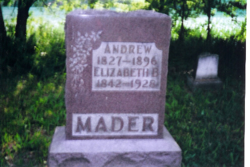 August, Elizabeth __arine, d. June 14, 1878 August, Elizabeth, w/o Anton, d. Dec 6, 1881 August, Frederick E. s/o Anton Jr. & Elizabeth, d. Feb 2, 1879 August, Joseph Anton, d. Mar 18, 1876 August, Margaret E. d/o Anton Jr. & Elizabeth d. Mar 25, 1876 Batty, Frederick d. jan 29, 1876 Black, Andrew d. Ma 25,1 840 Black, Aaron, s/o F.&E. d. Apr 30, 1861 Black, Charlotte d/o A. & Ann d jan 11, 1855 Black, Christena, w/o Jacob d. oct 11, 1853 Black, Frederic d. May 14, 1860 Black, Jacob s/o F.&E. d. Aug 21, 1834 Black, Jacob d. Jan 4, 1856 Black, Jacob d. Jan 10, 1845 Black, Mary d Oct 9, 1836 Black, Rosanna d. Aug 5, 1833 Brehm, Anna R. d/o F&M.G.W., d.Jan 15, 1872 Brehm, Johann d apr 11, 1881 Brehm, John Fred'k d. Dec 28, 1877 Brehm, Margaretha w/o J.A. d. Dec 15, 1901 Carter, David d. Mar. 16, 1848 Day, Jerima d/o S.&S. d. Aug 25, 1859 Day, Samuel L. s/o S.&S. d. July 13, 1861 Day, Sarah A. d/o S.&S. d. Sept 1, 1844 Day, Solomon d. June 13, 1872 Day, William d. Oct 23, 1867 Everley, Daniel s/o F.&N d. Dec 4, 1846 Everley, Jacob d. Apr. 28, ___ Everley, Jacob d. Feb 1850 Everley, Mary d. Feb 1843 Everley, Nancy w/o Frederick d. Apr 28, 1843 Everley, Rachel d/o F.&N. d. Apr 28, 1842 Everley, Samuel s/o Frederick & Nancy d. Aug 8, 1851 Fent, William E. s/o R.W.&A. d. Apr 10. 1863 Flint, William E. d. June 1863. Civil War Gones, Cora Etta, d/o David & Mary A. d. Sept 3, 1881 Gones, Elmira d/o David & Mary A. d. Nov 3, 1876 Harp, Levi d. Aug 13, 1854 (from Brenda Duckworth) Harvey, James d. May 2, 1850 Harvey, Sarah w/o James d. Sept 20. 1845 Hixson, William R. s/o s. & __ d. Dec 29, 1867 Huegel, Pressilla, d/o Jacob & Magdalene d. June 6, 1870 Hughes, Joseph 1801-Apr 26, 1892 Hughes, Mary w./o J. d. Mar 4, 1848 Hughes, Samuel s/o William & R. d. July 28, 1837 Hummel, J.F. d. Nob 15, 1856 Lindsley, Philena w/o Hiram d. jan 21, 1881 Mader, Andrew 1827-1896 Mader, Ann Margaret w/o Frederick C. d Jan 13, 1872 Mader, Barbara w/o J.A., d. Dec 12, 1872 Mader, Elizabeth 1842-1928 Mader, Frederick Christian d. Jan 21, 1878 Mader, Hannah L. d/o Andrew & Elizabeth July 18, 1864-Aug 25, 1864 Mader, John August d. Dec. 17, 1872 Mader, Margeret d/o Andrew & Elizabeth July 18, 1864-Aug 23, 1864 Massena, Naleson d. Apr 8, 1848 McKinney, Elizabeth w/o John d. Apr. 12 ___ McKinney, John d. July 27, 1852 McKinney, Mary d. Sept 18, 1893 McKinney, Susanna F. d/o Wm & Sarah A. d. Dec 2, 1853 Renner, nifant s/o J.B. & H.E d. Sept 30, 1878 Shearer, David s/o G.&C. d. July 18, 1854 Wyatt, Jeptha M. s/o E&C. d. june 3, 1861 Footstones: F.S. F.L.L. N.M. J.A.A. E.C.A. |